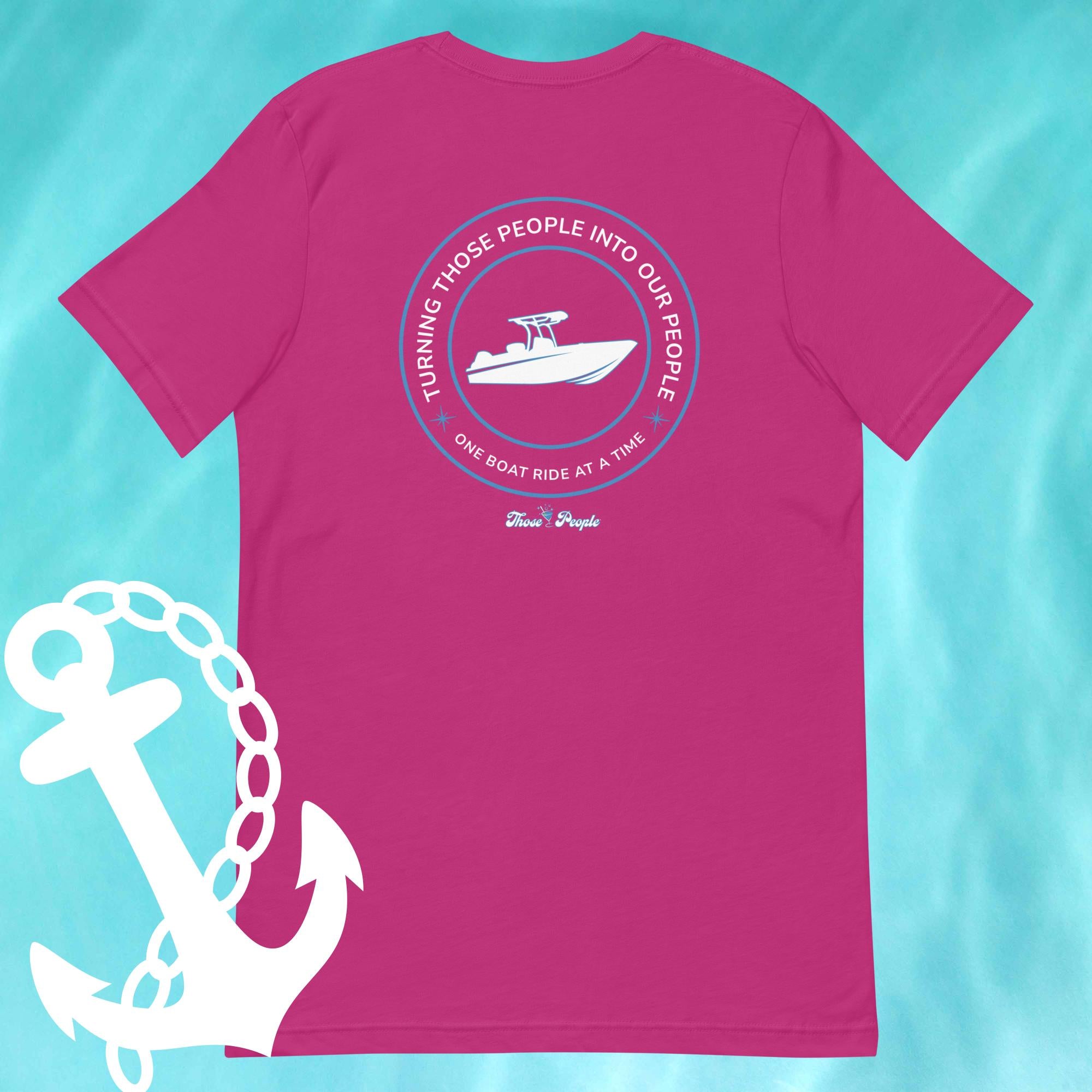 This isn’t just another tee—it’s made for sunshine, good company, and that perfect moment when the waves meet the music. Featuring the Those People logo on the front and the One Boat Ride at a Time Moments design on the back, this Flip Side Edition blends easy comfort with all-day vibe. Soft, lightweight, and built with just the right amount of stretch, it’s ready for every dock day, cruise, and sunset ride.